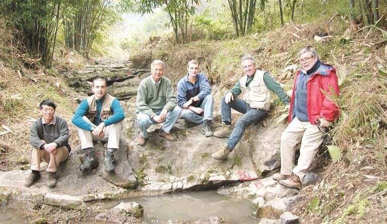 “大概是在2000年,村里跟我们说有北京的教授和一群外国人要来村里‘找石头’。”老屋就在“金钉子”核心区旁的湴冲屯村民张行超、刘福仁夫妇回忆道。刘福仁说,核心区这片剖面原来是一条冲沟,水从上游流下来,经常年冲刷,冲沟裸露出部分岩石,冲沟两边则是大片竹林。为了方便考察,地质科考队将冲沟两边的竹林进一步开挖,露出了更多的基岩。张行超等村民经常去帮忙挖土、取样。